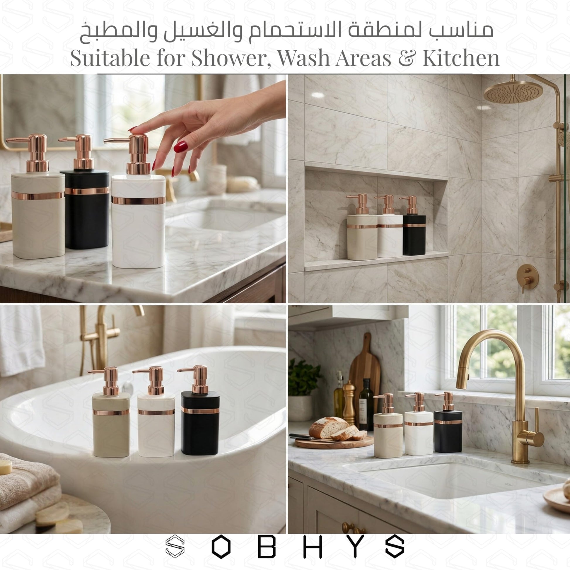 This modern soap dispenser from SOBHYS brings contemporary elegance to your bathroom or kitchen with its sleek design and luxurious rose gold pump. Standing at 11 centimetres tall with a base measuring 7 centimetres wide, this compact yet practical dispenser blends seamlessly with modern interiors whilst providing convenient access to liquid soap or lotion. The durable plastic construction ensures longevity, whilst the sophisticated rose gold metallic accents add a touch of premium styling to your space. Available in three versatile colour options - off-white, black, and greige - you can select the perfect shade to complement your existing décor. The pump mechanism delivers smooth, controlled dispensing with each press, making it ideal for handwashing stations in bathrooms, powder rooms, or kitchen sinks. The 5-centimetre pump height provides comfortable operation for all family members. Whether you're refreshing your bathroom accessories or seeking a stylish kitchen addition, this SOBHYS dispenser combines functionality with contemporary aesthetics to elevate your daily routine. Product images are digitally enhanced using AI to illustrate usage scenarios. The actual product design, materials, and proportions remain unchanged.