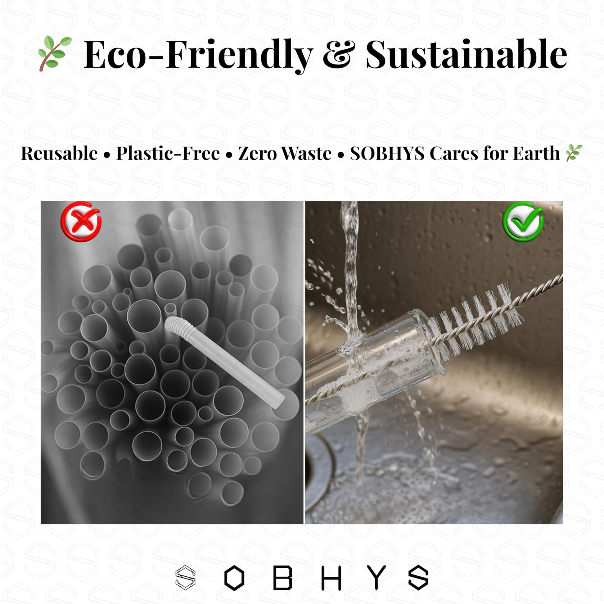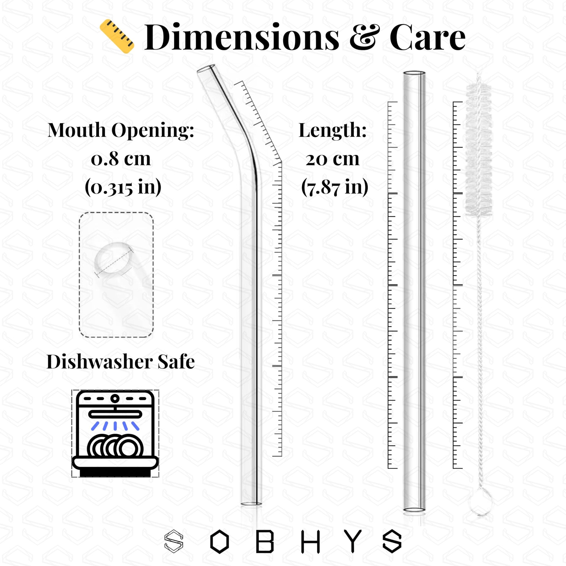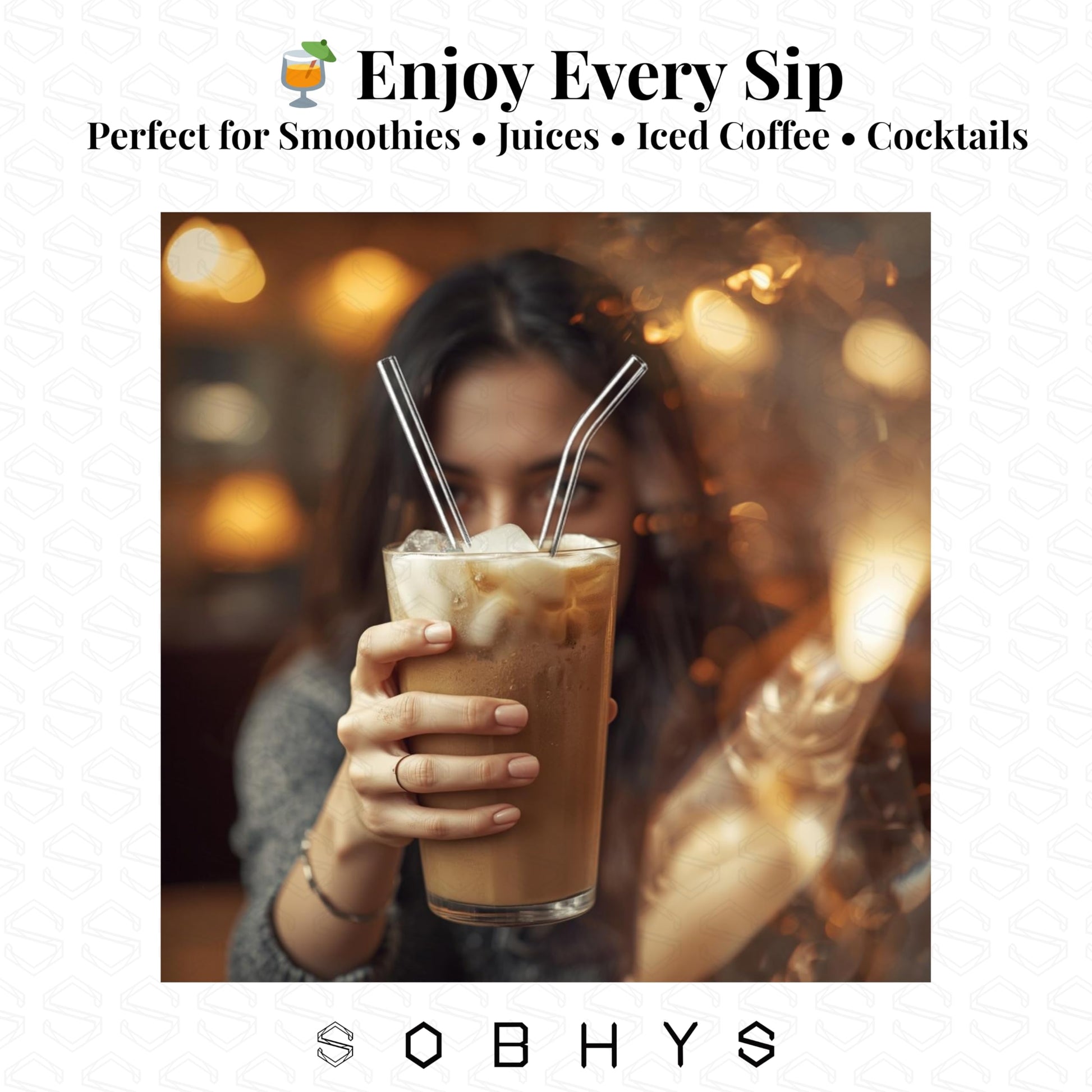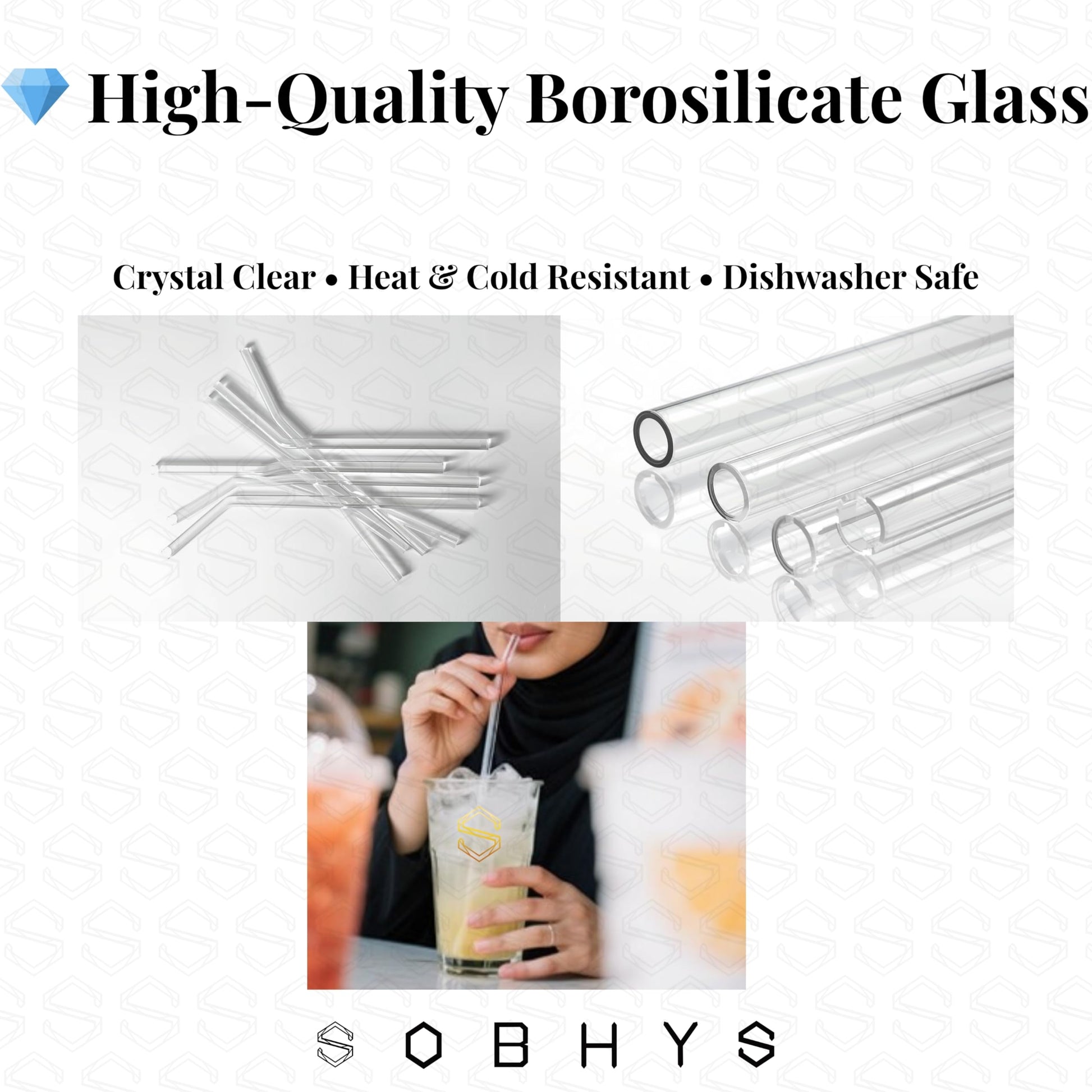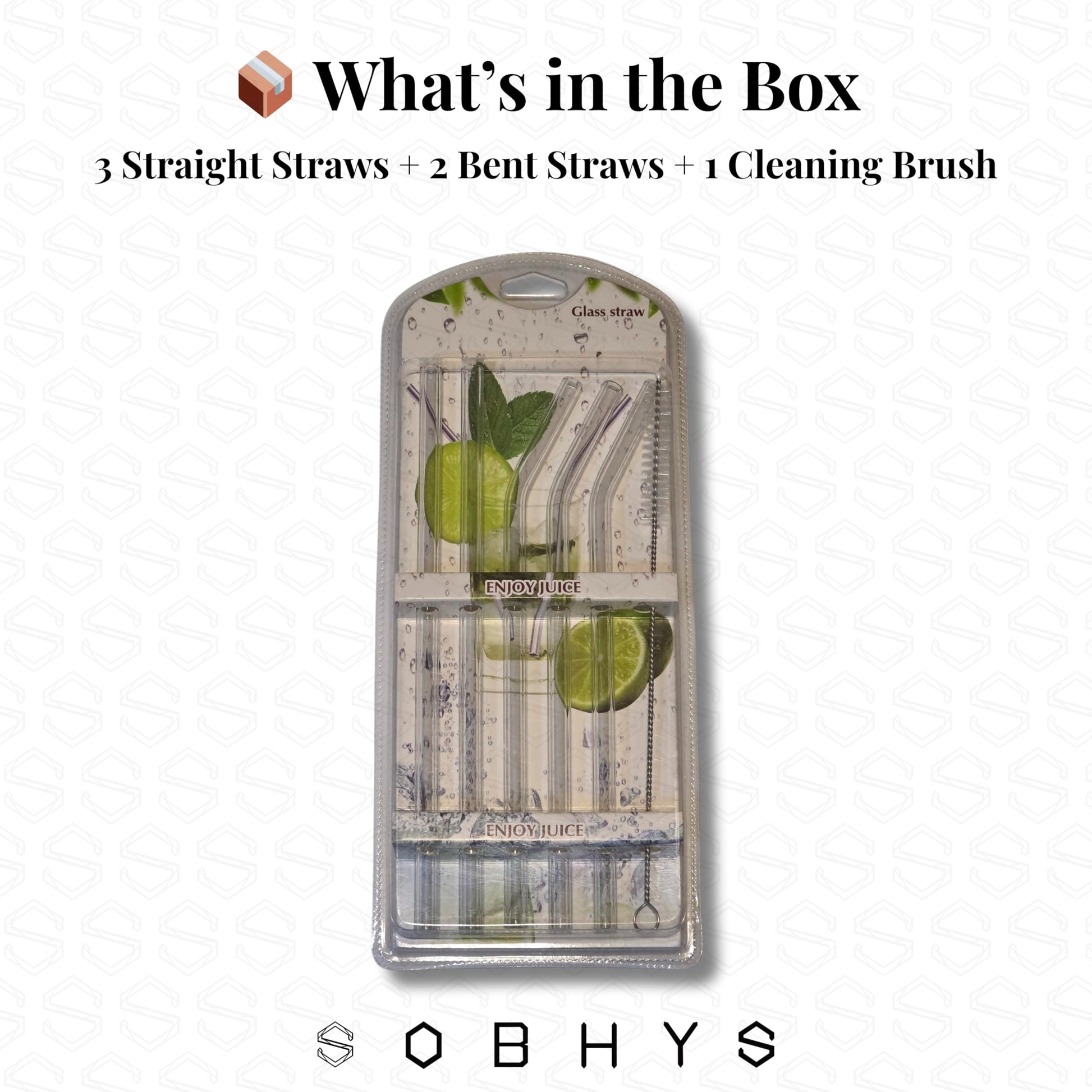Sip smart, live sustainably. The SOBHYS Reusable Glass Drinking Straw Set combines elegance with eco-conscious design. Each straw is crafted from premium borosilicate glass for lasting clarity, strength, and taste neutrality — no plastic, no metal, just pure flavor. Each set includes five straws (a mix of straight and bent) and a stainless-steel cleaning brush to keep them spotless after every use. Perfect for smoothies, iced coffee, and cocktails, these straws bring a touch of café-style sophistication into your kitchen. Thoughtfully packaged under the SOBHYS “Own the World” brand, they make a refined, gift-ready choice for any modern home. Reusable, stylish, and planet-friendly — SOBHYS helps you elevate every sip. Elevate your drinking experience with this set of 5 reusable glass drinking straws, crafted from premium borosilicate glass for exceptional durability and heat resistance. The set includes both straight and bent straws, perfect for enjoying everything from refreshing smoothies and juices to iced coffee and sophisticated cocktails. These elegant glass straws add a touch of sophistication to any beverage while offering a sustainable alternative to single-use options. The included cleaning brush ensures thorough maintenance, keeping your straws pristine for countless uses. The transparent glass design complements any drinkware, making them ideal for both casual daily use and special occasions. These straws are suitable for both hot and cold beverages, and their smooth surface provides a pleasant drinking experience. The robust construction ensures they're sturdy enough for thick smoothies yet elegant enough for delicate cocktails. Remember to handle with appropriate care, as expected with any glass product.