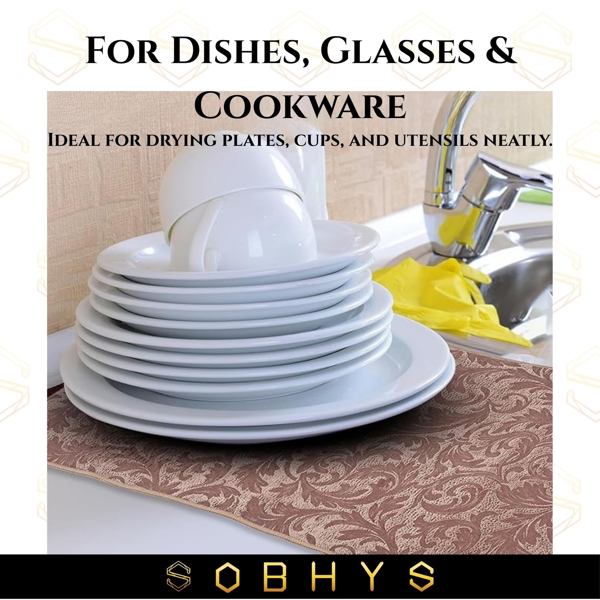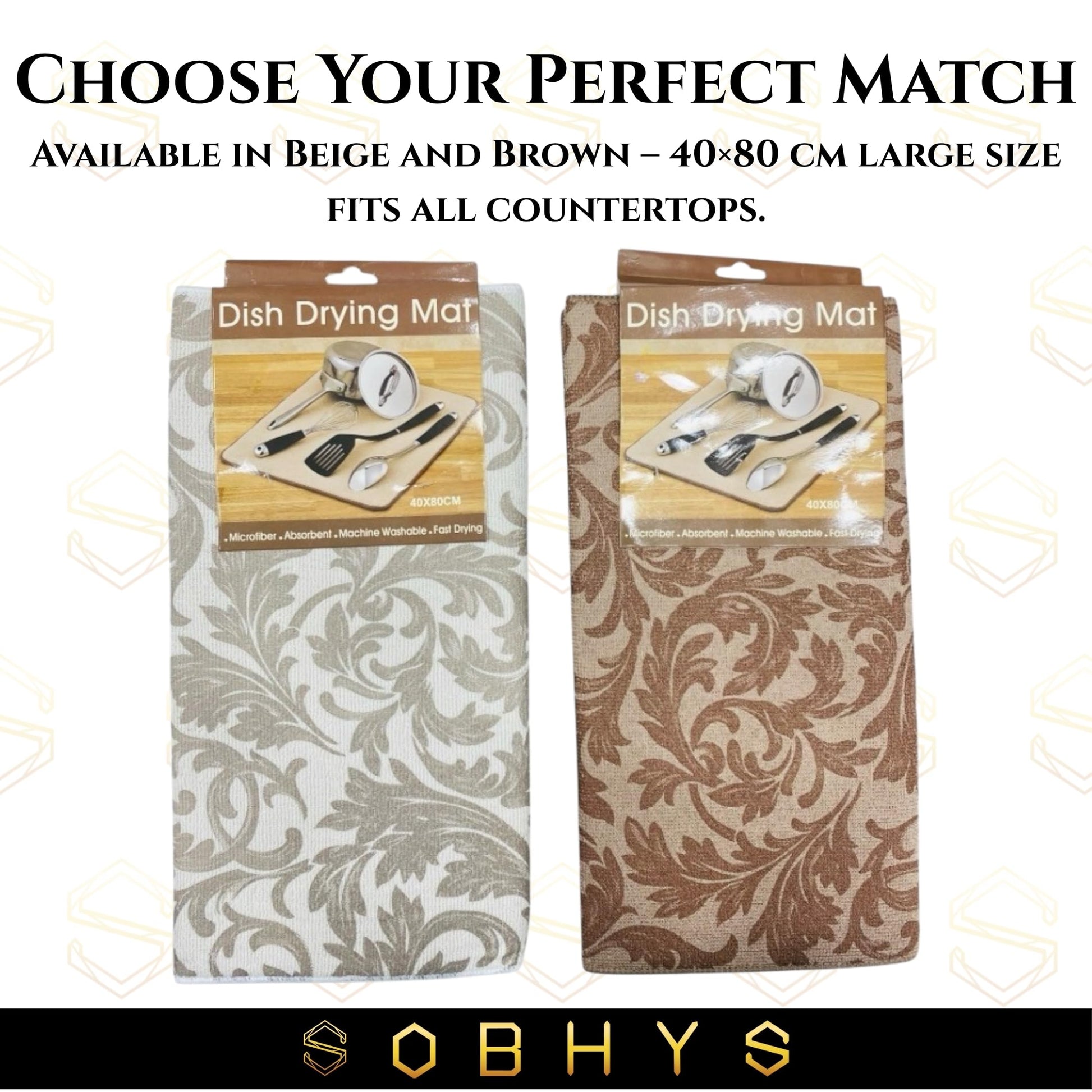 Transform your kitchen countertop organisation with the SOBHYS Dish Drying Mat. This generously sized 40×80 cm mat provides ample space for all your drying needs. Crafted from premium microfibre material, it delivers exceptional absorbency to quickly wick away water from your dishes, glasses, and kitchen implements. The mat's innovative design allows for rapid drying, helping to maintain a tidy and organised kitchen space. Practical and versatile, this kitchen counter mat can be machine washed for easy maintenance and repeated use. Its durable construction ensures long-lasting performance, while the sleek design complements any kitchen décor. The mat's substantial size makes it perfect for handling multiple dishes simultaneously, making post-meal cleanup more efficient. Whether you're dealing with everyday dishes or entertaining guests, this dish drying mat offers a reliable solution for your kitchen needs. Keep your kitchen clean, dry, and elegant with the SOBHYS Dish Drying Mat. Crafted from premium microfiber, it absorbs excess water quickly and protects your countertops from spills and stains. The large 40×80 cm size offers plenty of space for your dishes, cups, and cookware — perfect for everyday kitchen use. Available in two stylish colors – Beige and Brown, this drying mat blends seamlessly with modern kitchens. It’s machine washable, eco-friendly, and designed to last through countless washes. Whether used under a dish rack, coffee setup, or for fruits and glasses, the SOBHYS Dish Drying Mat is your reliable, elegant kitchen essential.