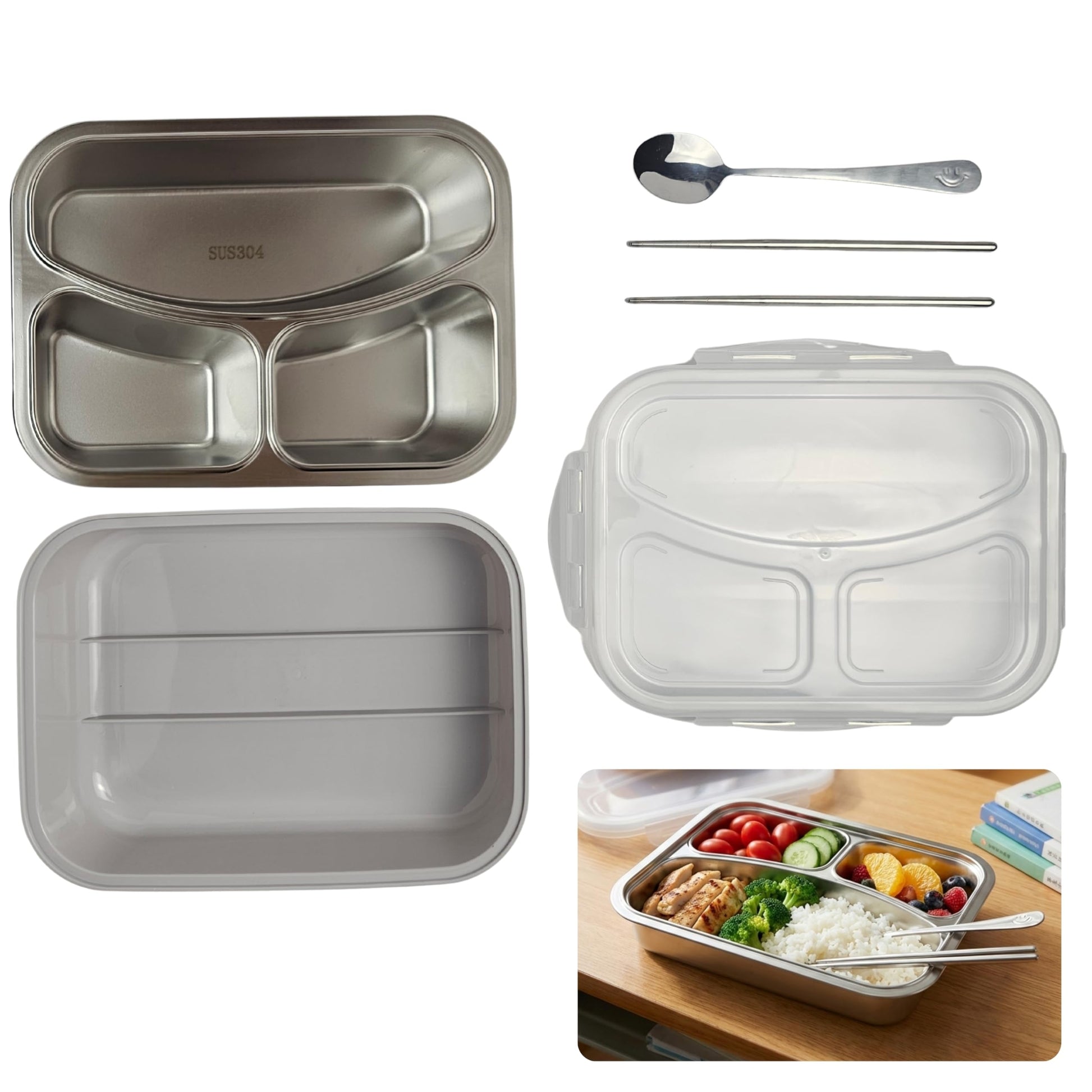 Stainless Steel Lunch Box with 3 Compartments - Grey
