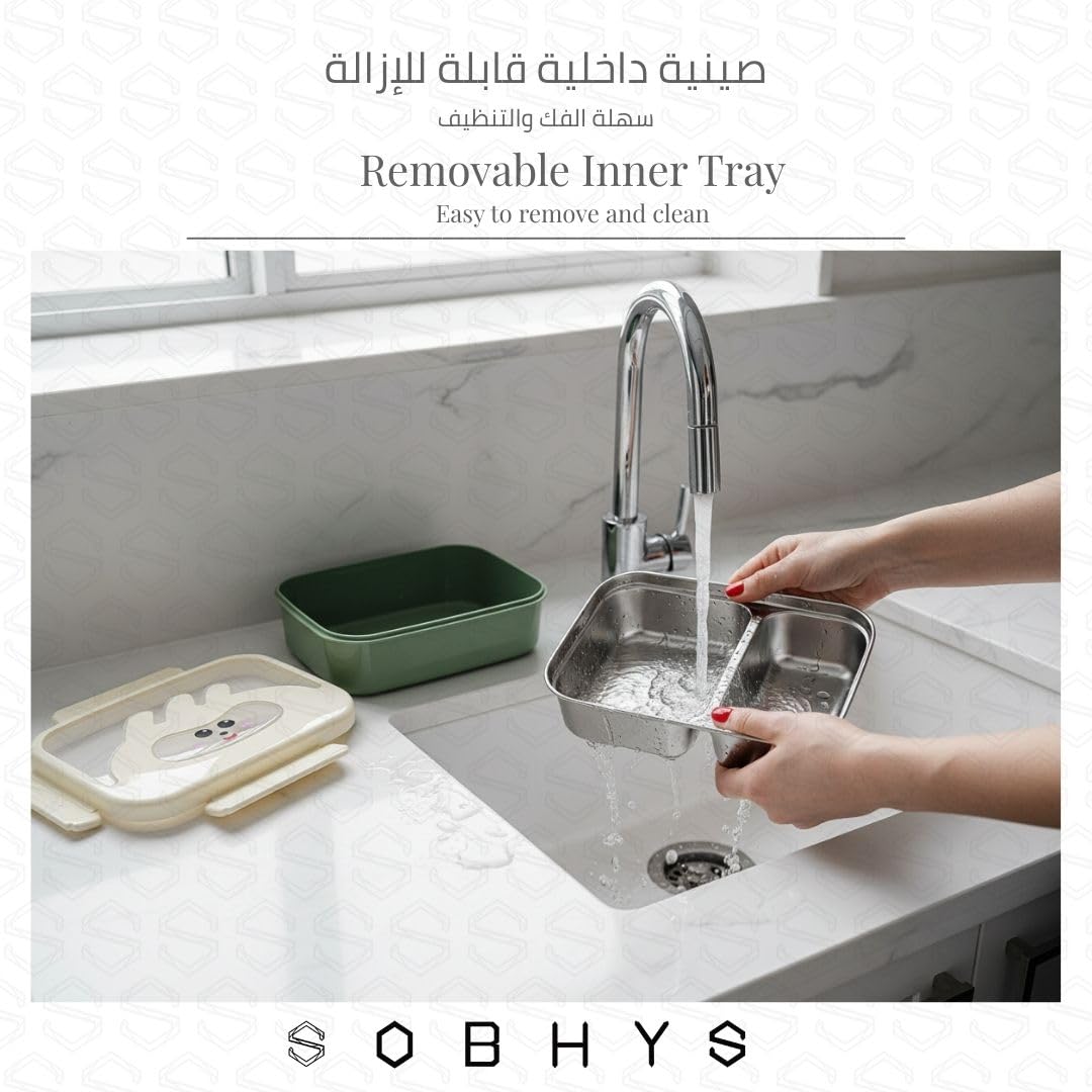 Designed for modern daily use, the SOBHYS stainless steel lunch box combines practicality and durability for everyday meals. The lunch box features a removable SUS304 stainless steel inner tray that helps keep different foods separated and easy to serve.