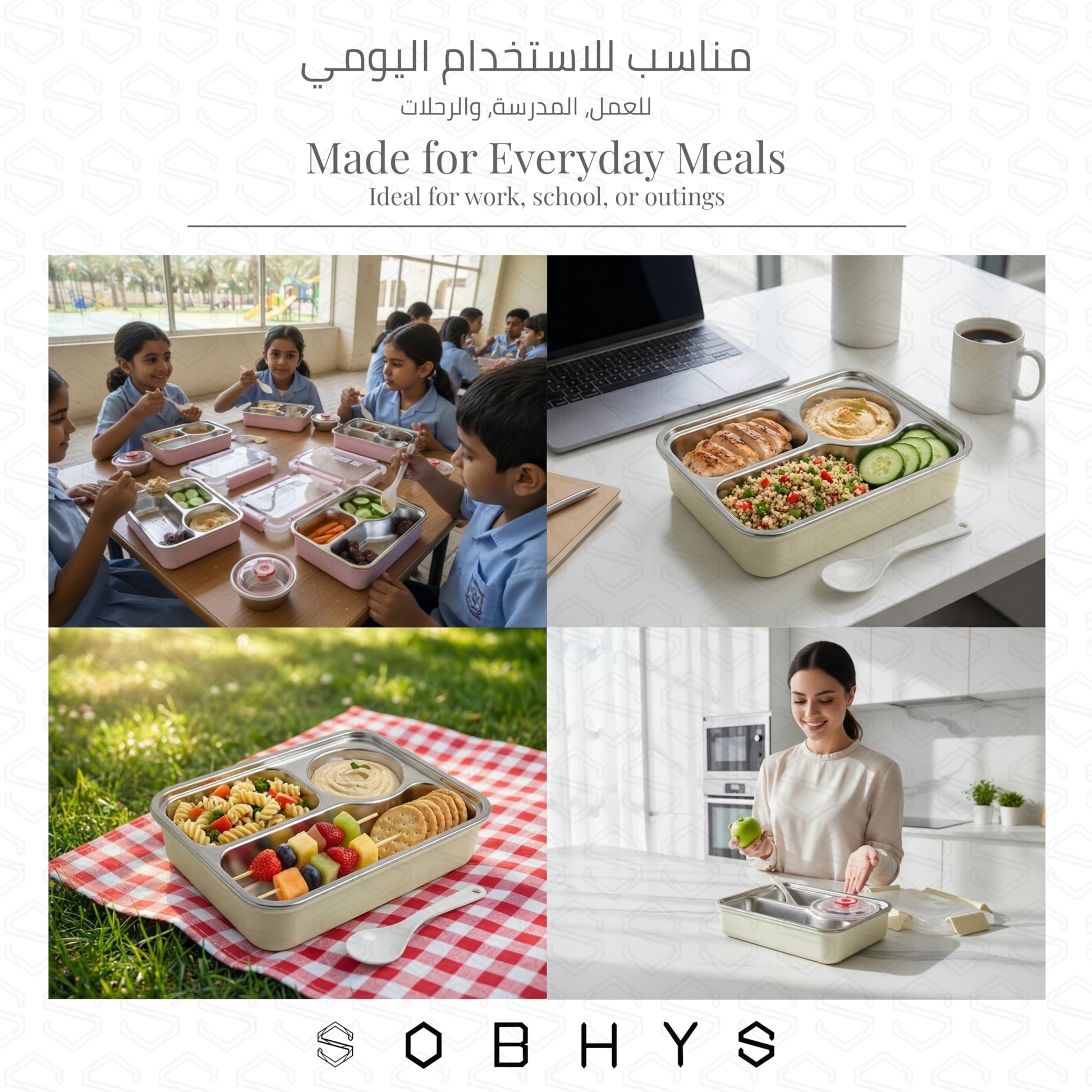 This SOBHYS stainless steel lunch box is the perfect companion for school, work, and travel. Crafted from durable SUS304 stainless steel, this meal container offers a healthy and long-lasting solution for your daily meals. The lunch box features a practical removable inner tray with multiple compartments, allowing you to separate different foods and keep your meal organised. The set includes a convenient sauce container with a silicone seal to prevent leaks, plus a matching spoon for easy eating on the go. The transparent outer lid with coloured accents lets you see your meal at a glance whilst adding a touch of style. Measuring 19 x 14 x 5 centimetres, this compact lunch box fits easily into bags and backpacks. Available in four attractive colours to suit your personal style, you can choose the shade that best matches your taste. The included spoon measures 12 centimetres in length, and the sauce container is 6 centimetres in diameter. This reusable lunch box helps you enjoy fresh, home-prepared meals wherever your day takes you.