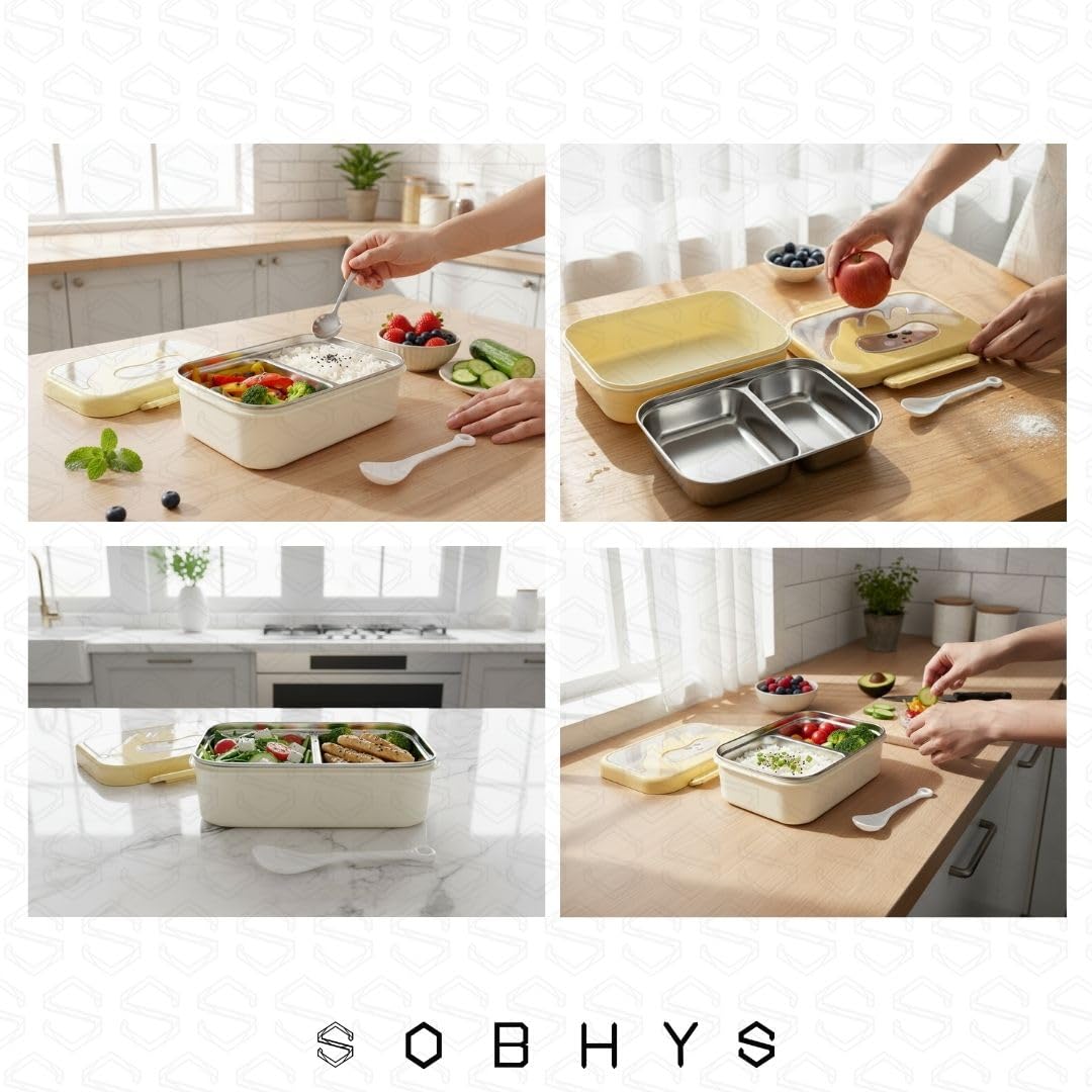 Designed for modern daily use, the SOBHYS stainless steel lunch box combines practicality and durability for everyday meals. The lunch box features a removable SUS304 stainless steel inner tray that helps keep different foods separated and easy to serve.
